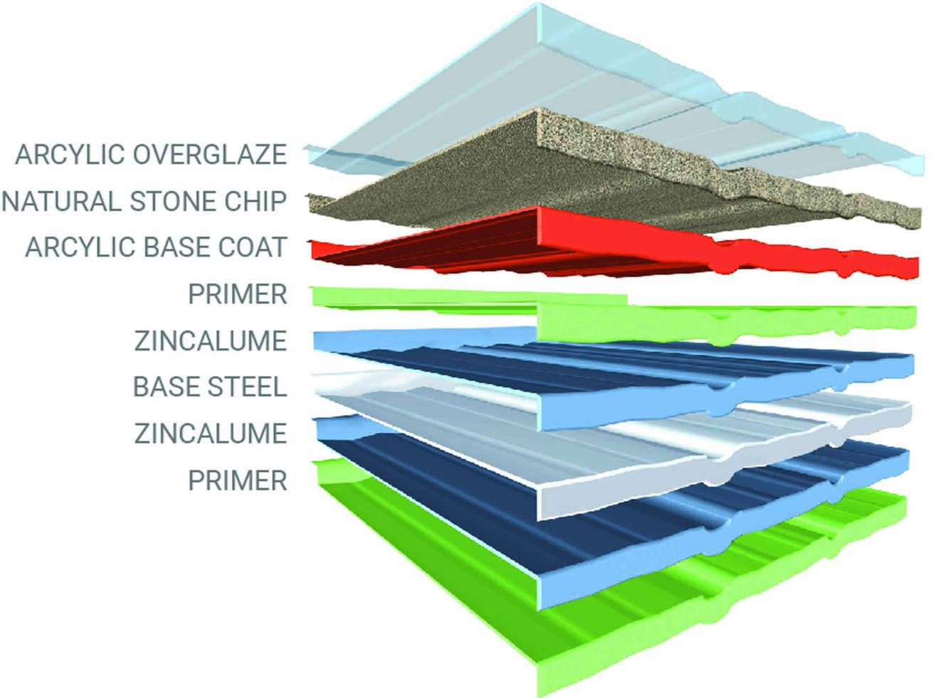 Tilcor panels are made with ZINCALUME® which combines the corrosion protection of aluminum with the sacrificial protection of zinc, giving it the advantage of both metals. As a result, ZINCALUME® has a significantly longer service life than a galvanized steel product using only zinc.